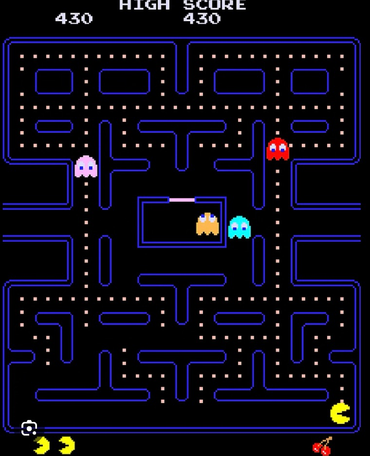 Pac-Man, originally called Puck Man in Japan where it originated, was developed in 1980, one of the first of many video games to follow in its wake. The player controls Pac-Man, who must eat all the dots inside an enclosed maze while avoiding four colored ghosts. Eating large flashing dots called “Power Pellets” causes the ghosts to temporarily turn blue, allowing Pac-Man to eat them for bonus points. It became one of the greatest video games of all time.